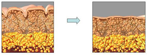 Прогревая кожу до 42 градусов, происходит фрагментация (дробление на части) старых волокон коллагена и чем