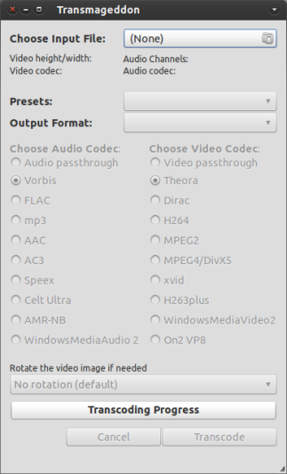 Transmageddon теперь установлен, так что давайте начнем конвертировать видео. Запустите его из меню приложений. Приложение выглядит так: