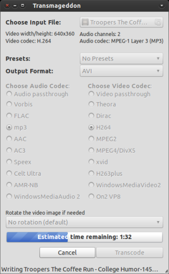 После того, как вы закончите выбирать нужные настройки, нажмите «Transcode», чтобы начать процесс конвертации. Это может занять некоторое время в зависимости от длины видео и выбранных вами настроек. Вы найдете выходной файл в разделе Видео в вашей домашней директории. Легко, не правда ли?