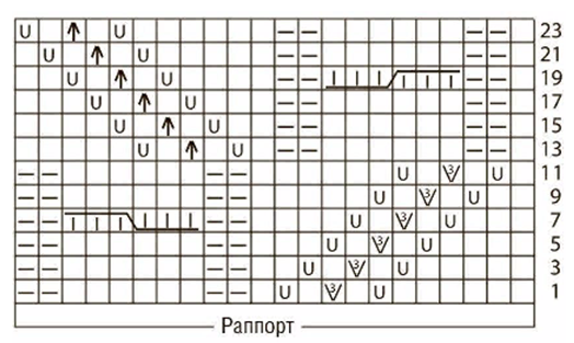 Раппорт узора 22 петли + 2 кромочных (кромочные петли в схеме указаны)