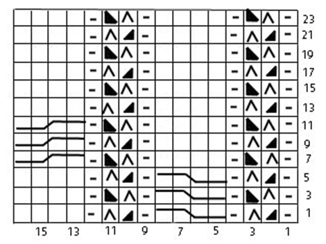 Раппорт узора 16 петель + 2 кромочных (кромочные петли в схеме не указаны)