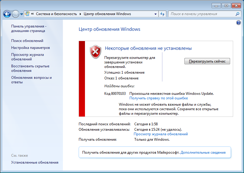 - Типичный баг в работе Центра обновления.