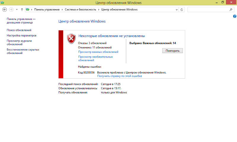 Ошибка Центра обновления Windows 800F0A13