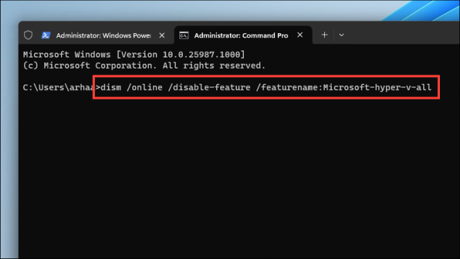 Вы можете выполнить эту функцию с помощью PowerShell и командной строки. Чтобы отключить Hyper-V с помощью PowerShell, введите или скопируйте и вставьте приведенную ниже команду.