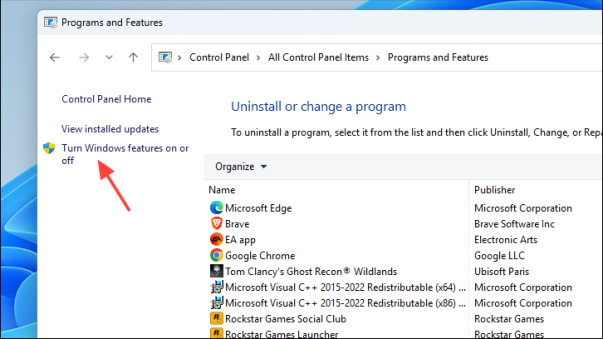На следующем экране выберите «Включить или отключить функции Windows». На вашем экране откроется новое окно.