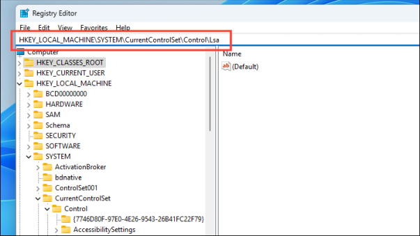 HKEY_LOCAL_MACHINESYSTEMCurrentControlSetControlLsa