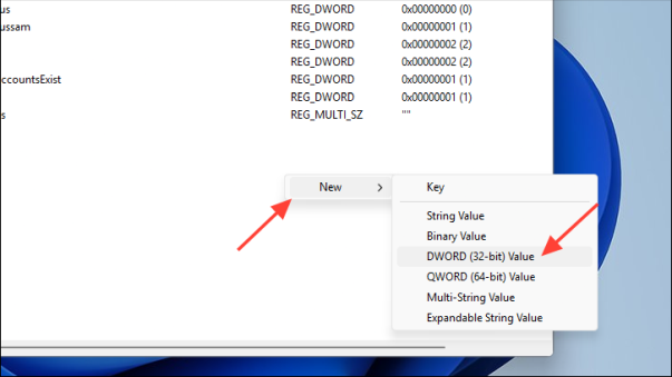 Если такого файла DWORD не существует, щелкните правой кнопкой мыши пустое место и наведите указатель мыши на параметр «Новый». Затем выберите параметр «DWORD». Наконец, переименуйте файл в «LsaCfgFlags».