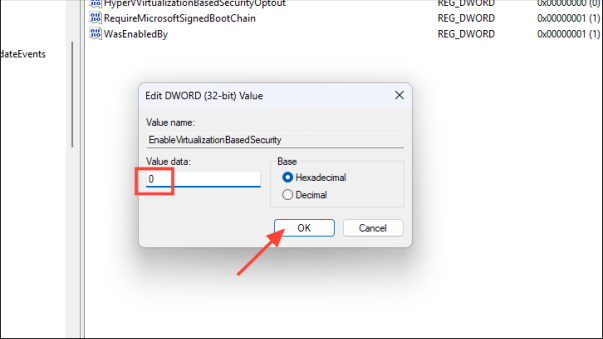 В правой части окна дважды щелкните «EnableVirtualizationBasedSecurity», чтобы открыть его свойства.
