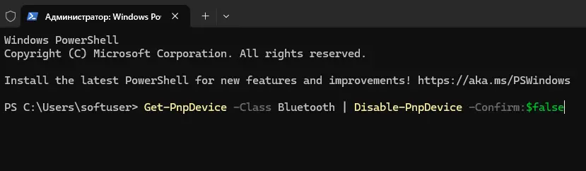 Get-PnpDevice -Class Bluetooth | Disable-PnpDevice -Confirm:$false