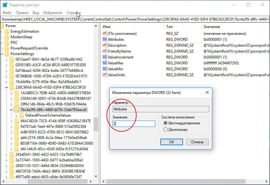 HKLMSYSTEMCurrentControlSetControlPowerPowerSettings238C9FA8-0AAD-41ED-83F4-97BE242C8F207bc4a2f9-d8fc-4469-b07b-33eb785aaca0