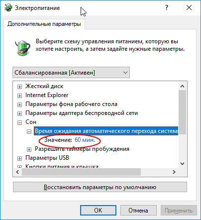 Командой control.exe powercfg.cpl,,3 откройте дополнительные настройки электропитания, раскройте секцию «Сон» и установите для опции «Время ожидания автоматического перехода в энергосберегающее состояние» время, примерно соответствующее нахождению Windows в состоянии блокировки.