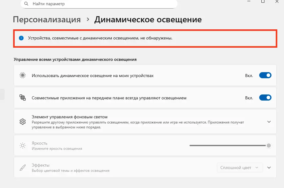 Dynamic Lighting работает только с устройствами, которые поддерживают стандарт HID LampArray или OpenRGB-совместимый протокол. Сейчас поддерживаются: