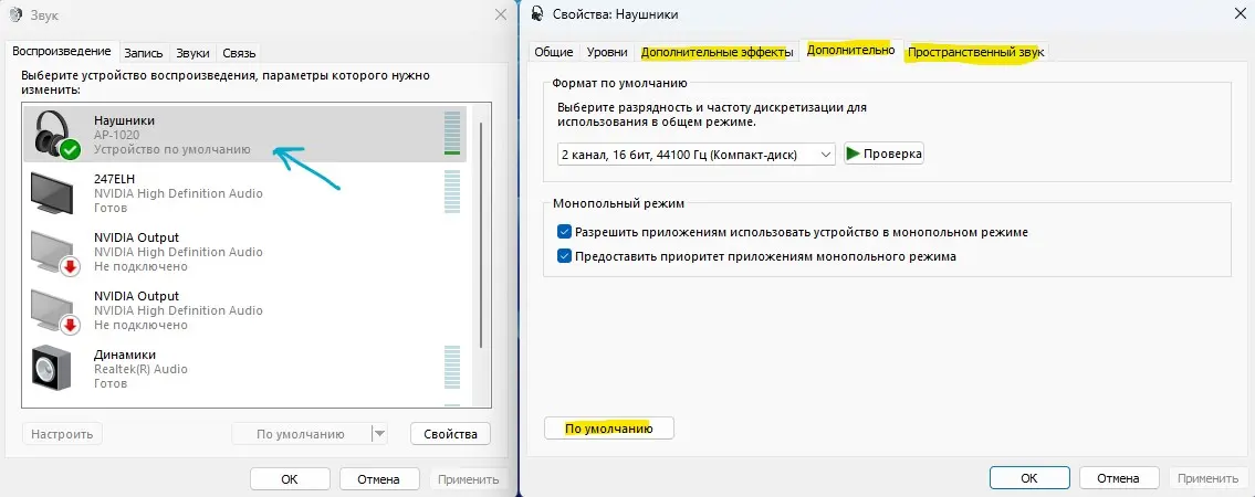 – Если используете USB‑наушники или аудиокарту – переподключите устройство, попробуйте другой порт.