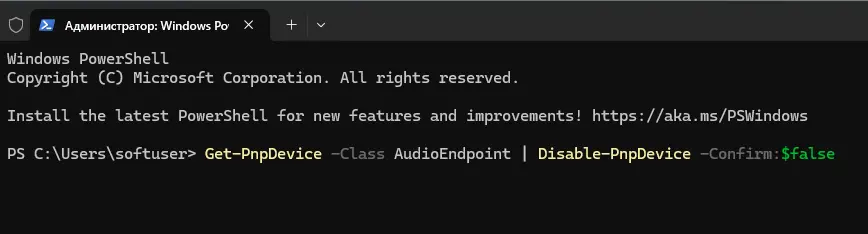 Get-PnpDevice -Class AudioEndpoint | Disable-PnpDevice -Confirm:$false