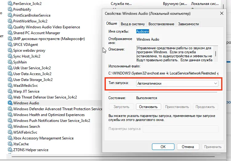 2. Найдите «Windows Audio» и «Windows Audio Endpoint Builder».