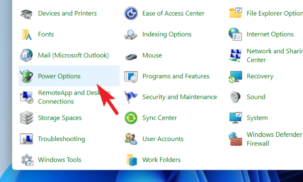 В окне панели управления нажмите «Электропитание», чтобы продолжить.