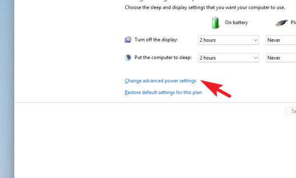 На следующем экране нажмите «Изменить дополнительные параметры питания». Откроется отдельное окно на вашем экране.