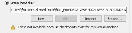 3. Если кнопка Изменить неактивна с сообщением Изменение недоступно из-за наличия snapshot, удалите все снэпшоты ВМ или отключите Production Checkpoint в настройках.