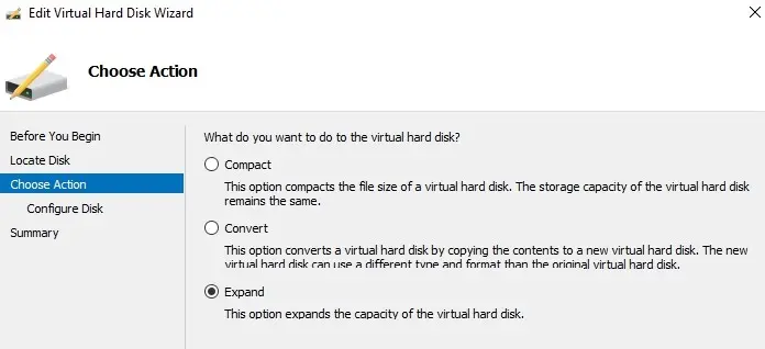 Увеличение размера VHDX-диска в Hyper-V Manager