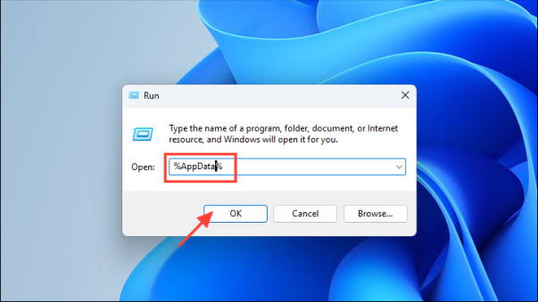Открытие папки AppData с помощью утилиты «Выполнить команду»