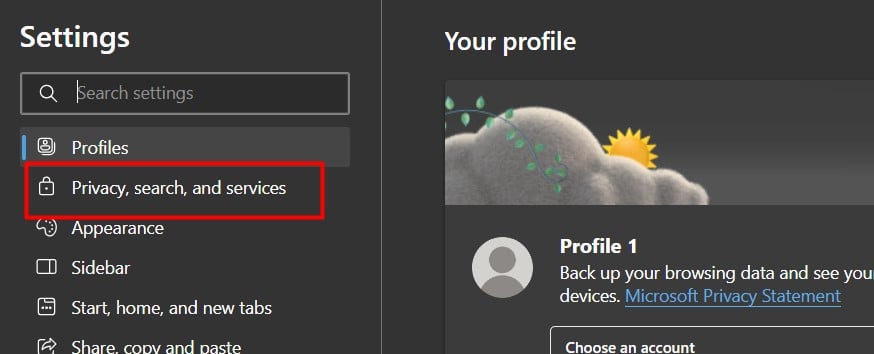 Нажмите на опцию «Конфиденциальность, поиск и сервисы» в настройках: