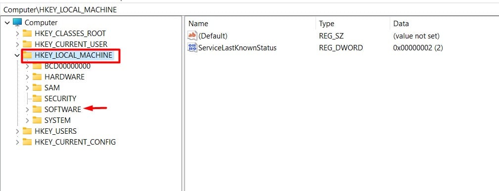 Шаг 2. Нажмите HKEY_LOCAL_MACHINE.