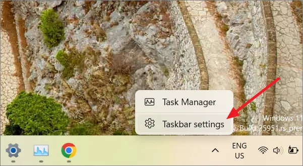 Щелкните правой кнопкой мыши на панели задач и выберите «Настройки панели задач».