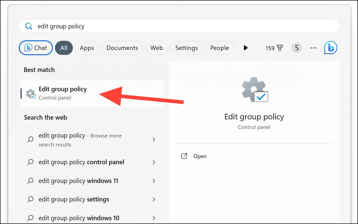 Откройте редактор локальной групповой политики из поиска Windows или введите gpedit.msc команду «Выполнить» и нажмите Enter.