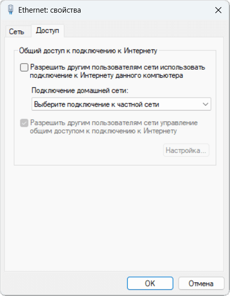 Если же получилось, тогда включите доступ к Интернету по этой сети. В разделе Параметры > Cеть и Интернет > Доп. сетевые параметры выберите Доп. параметры сетевого адаптера. И в Свойствах подключения Доступ и Разрешить другим пользователям сети использовать…