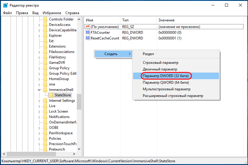 HKEY_CURRENT_USERSoftwareMicrosoftWindowsCurrentVersionImmersiveShellStateStore