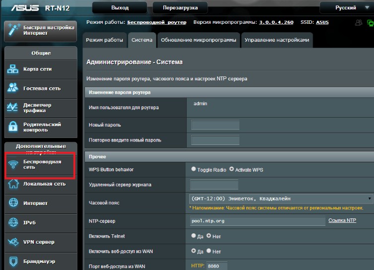 Как открыть настройки беспроводной сети в маршрутизаторе ASUS