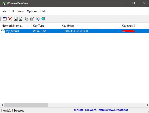 3. Утилита сразу же покажет подключенную сеть и пароль в колонке Key.