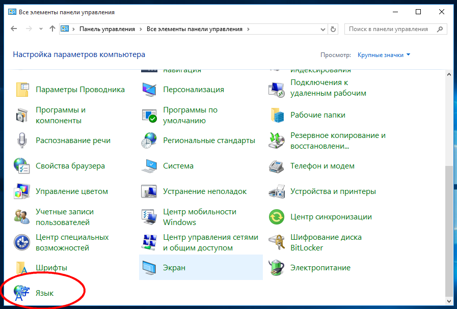 Делается это элементарно. Откройте классическую Панель управления, выберите на ней апплет «Язык»
