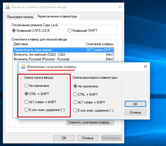 Как в Windows 10 сменить горячие клавиши для переключения языка ввода