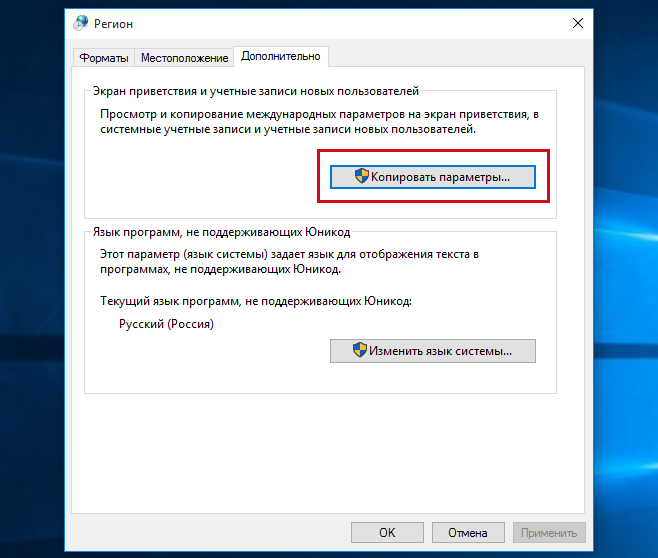 Новые настройки вступят в силу немедленно, но действительны они будут для уже вошедшего в систему пользователя. Если вы хотите, чтобы они были применены также и к интерфейсу входа в систему, в окне дополнительных параметров нажмите ссылку «Применить языковые параметры к экрану приветствия…»