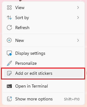Вызвать ее можно из контекстного меню рабочего стола, выбрав пункт «Добавление и изменение наклеек» (Add or edit stickers).