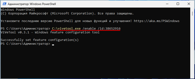 Если в вашей Windows 11 25211 они недоступны, активируйте их вручную с помощью сторонней консольной тулзы ViveTool.
