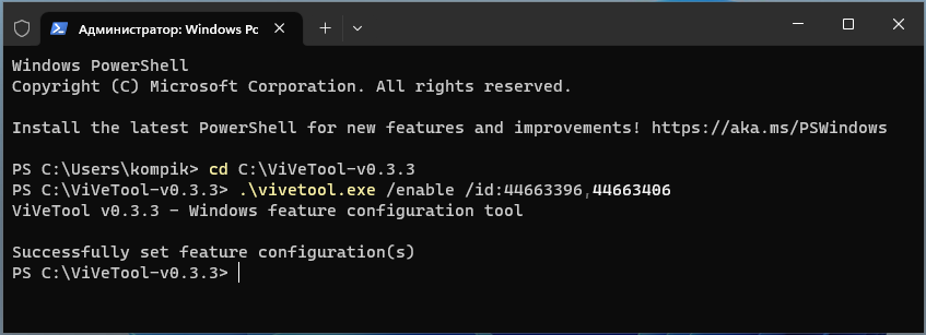 .vivetool.exe /enable /id:44663396,44663406