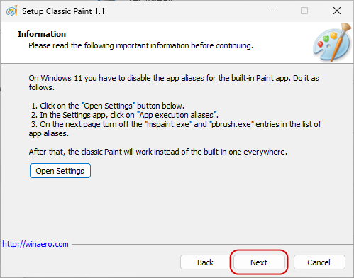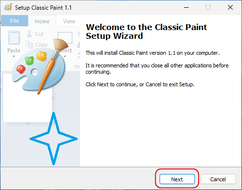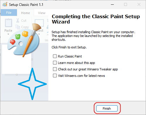 а затем продолжить и завершить установку Classic Paint.