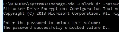 manage-bde -unlock D: -RecoveryKey J:1234567…987ABCDE4564.bek