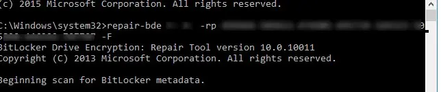 – Перед использованием repair-bde создайте посекторную копию диска, чтобы избежать потери данных