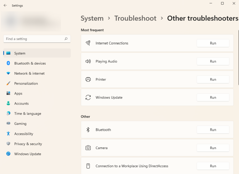 - Здесь вы увидите все встроенные средства устранения неполадок. Выберите подходящее средство устранения неполадок в зависимости от вашей проблемы, нажав кнопку «Выполнить» рядом с ним.