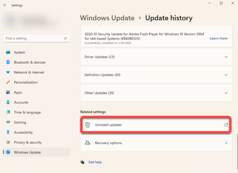- Нажмите Win+I и перейдите в Центр обновления Windows > История обновлений.
