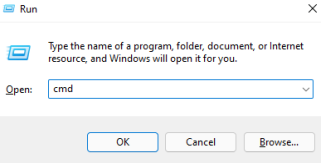 - Нажмите Win+R, введите cmd и нажмите Ctrl+Shift+Enter, чтобы запустить командную строку с правами администратора.