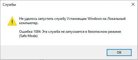 «Не удалось запустить службу Установщик Windows на Локальный компьютер. Ошибка 1084: Эта служба не запускается в безопасном режиме (Safe Mode)»