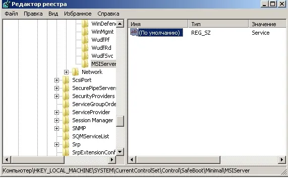 REG ADD «HKLMSYSTEMCurrentControlSetControlSafeBootMinimalMSIServer» /VE /T REG_SZ /F /D «Service»