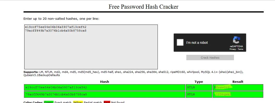 Полученные хэши можно расшифровать с помощью утилит, таких как Hashcat (в Kali Linux), или онлайн-сервисов, например, crackstation. Простые пароли расшифровываются быстро, поэтому важно использовать сложные пароли и регулярно проводить аудит их надежности через групповые политики.