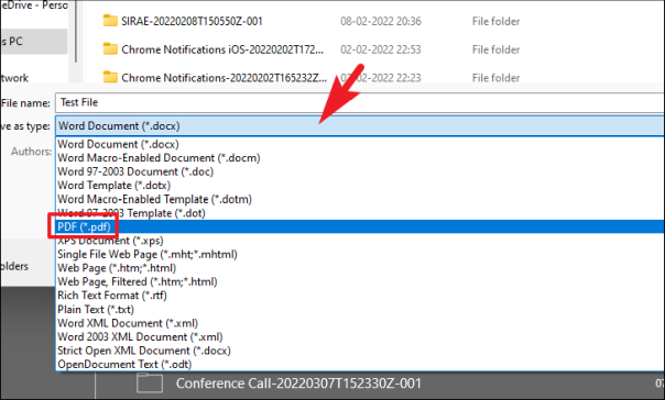 Чтобы продемонстрировать, мы изменим тип файла Word на тип PDF, используя Microsoft Word.