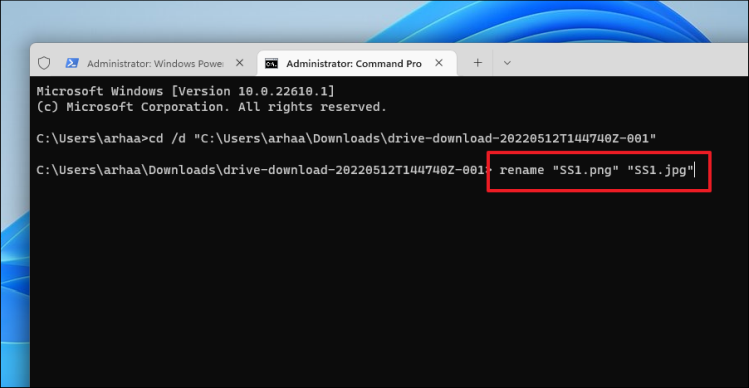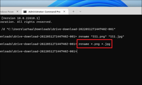 Чтобы изменить тип файла для нескольких файлов, присутствующих в папке, введите или скопируйте+вставьте указанную ниже команду и нажмите Enter на клавиатуре, чтобы выполнить ее.