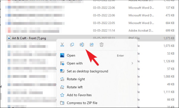 Теперь щелкните правой кнопкой мыши файл, который вы хотите переименовать, чтобы открыть контекстное меню, а затем нажмите «Переименовать», чтобы продолжить. Кроме того, вы также можете нажать F2клавишу на клавиатуре, чтобы сделать это.